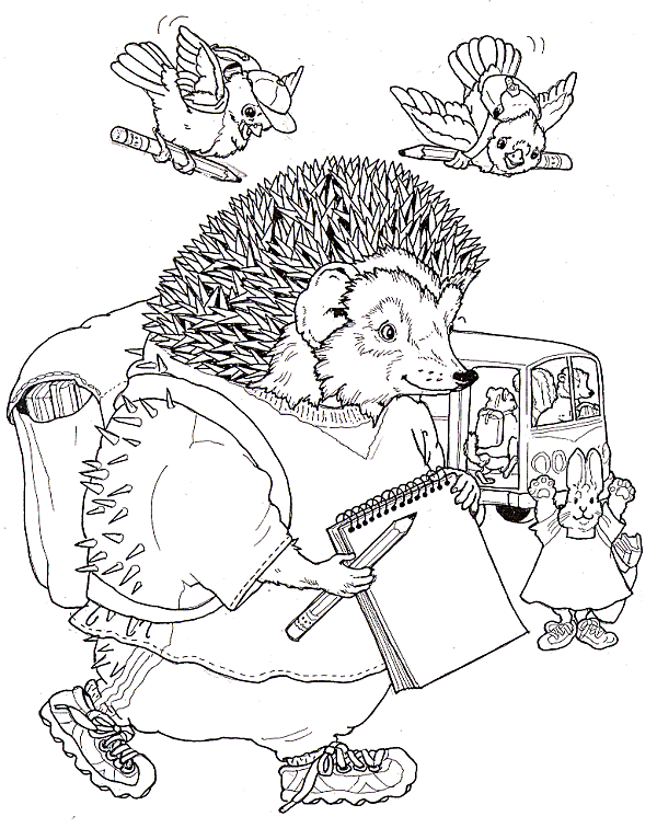 herisson avec son cartable scolaire