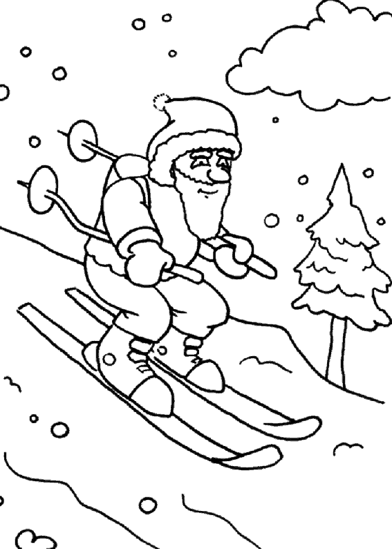 dessin du pere noel sur des skis